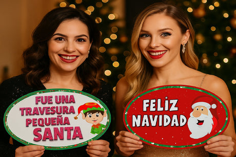 NAVIDAD - BIG 5 piece Christmas set- Photo Booth Sign Props .- Double Sided