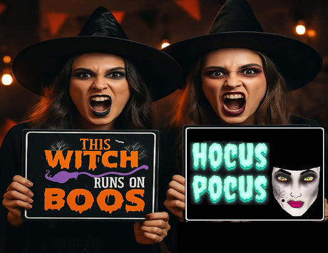 Halloween - 7 piece set- Photo Booth Sign Props .- Double Sided