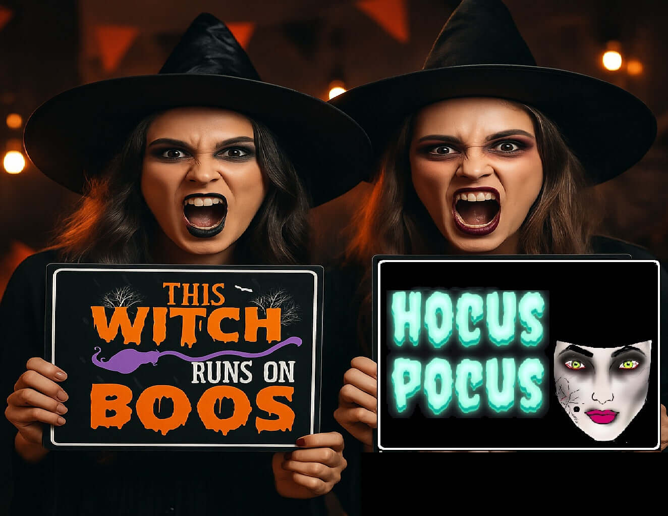 Halloween - BIG 5 piece set- Photo Booth Sign Props .- Double Sided